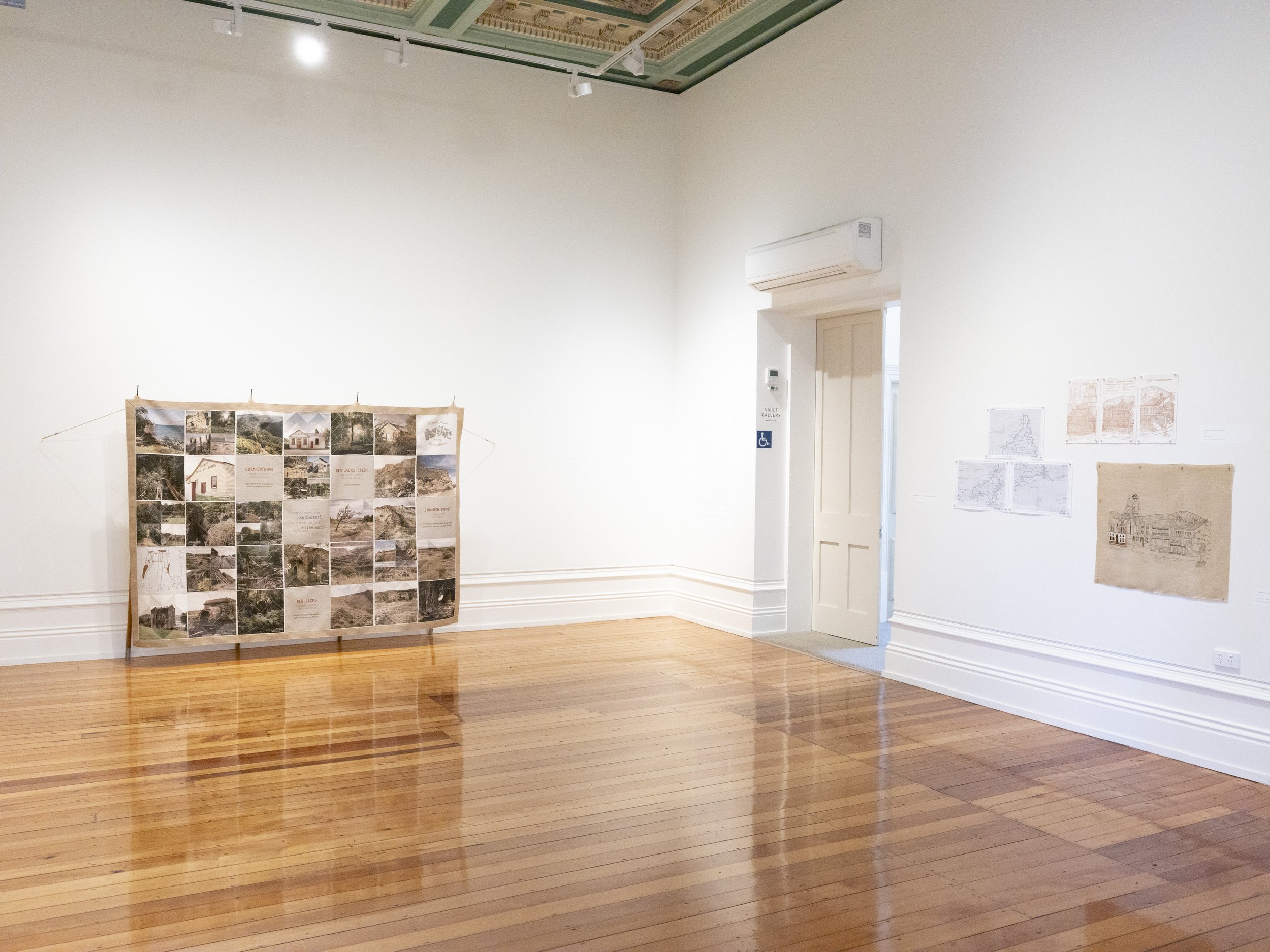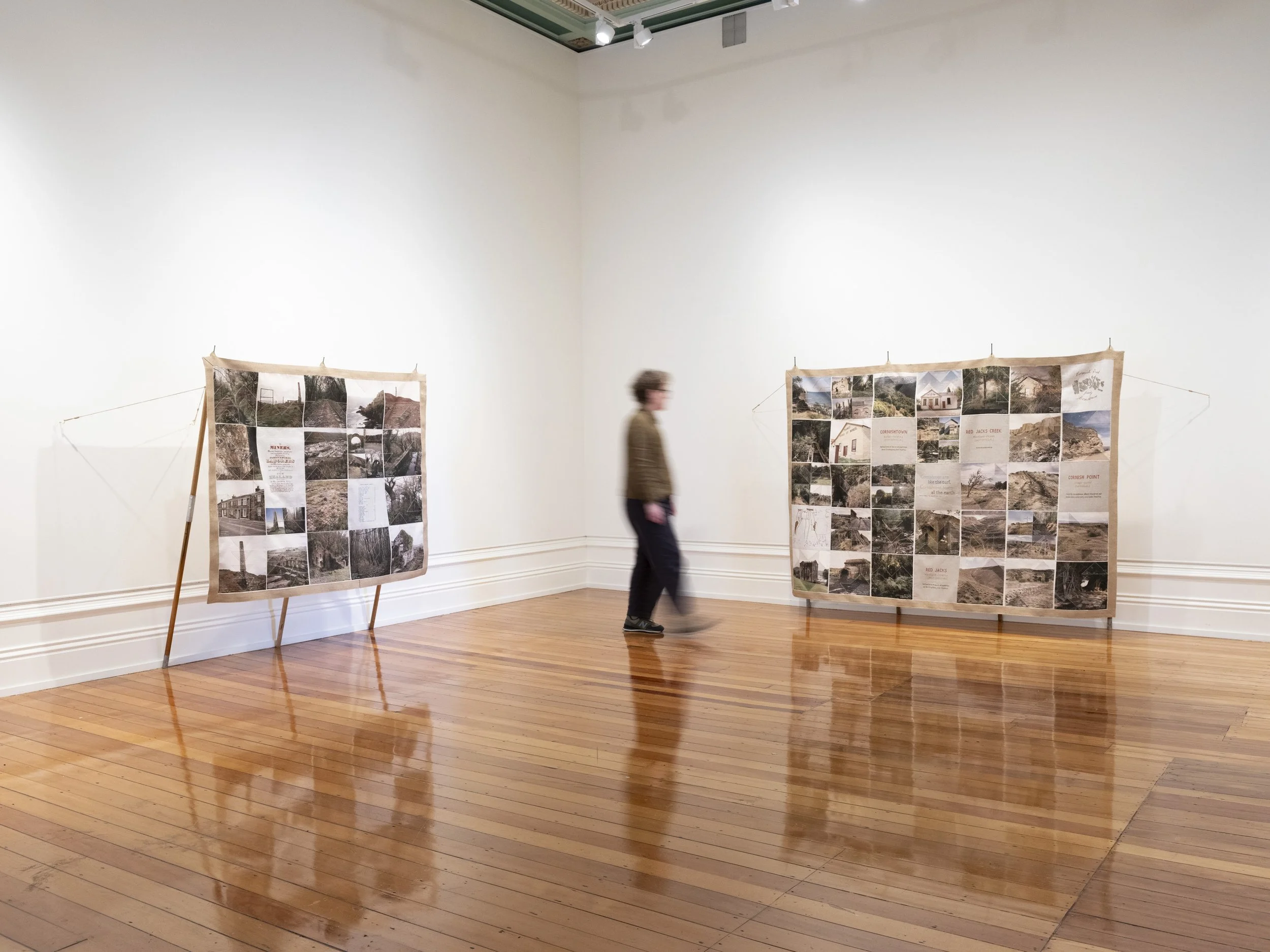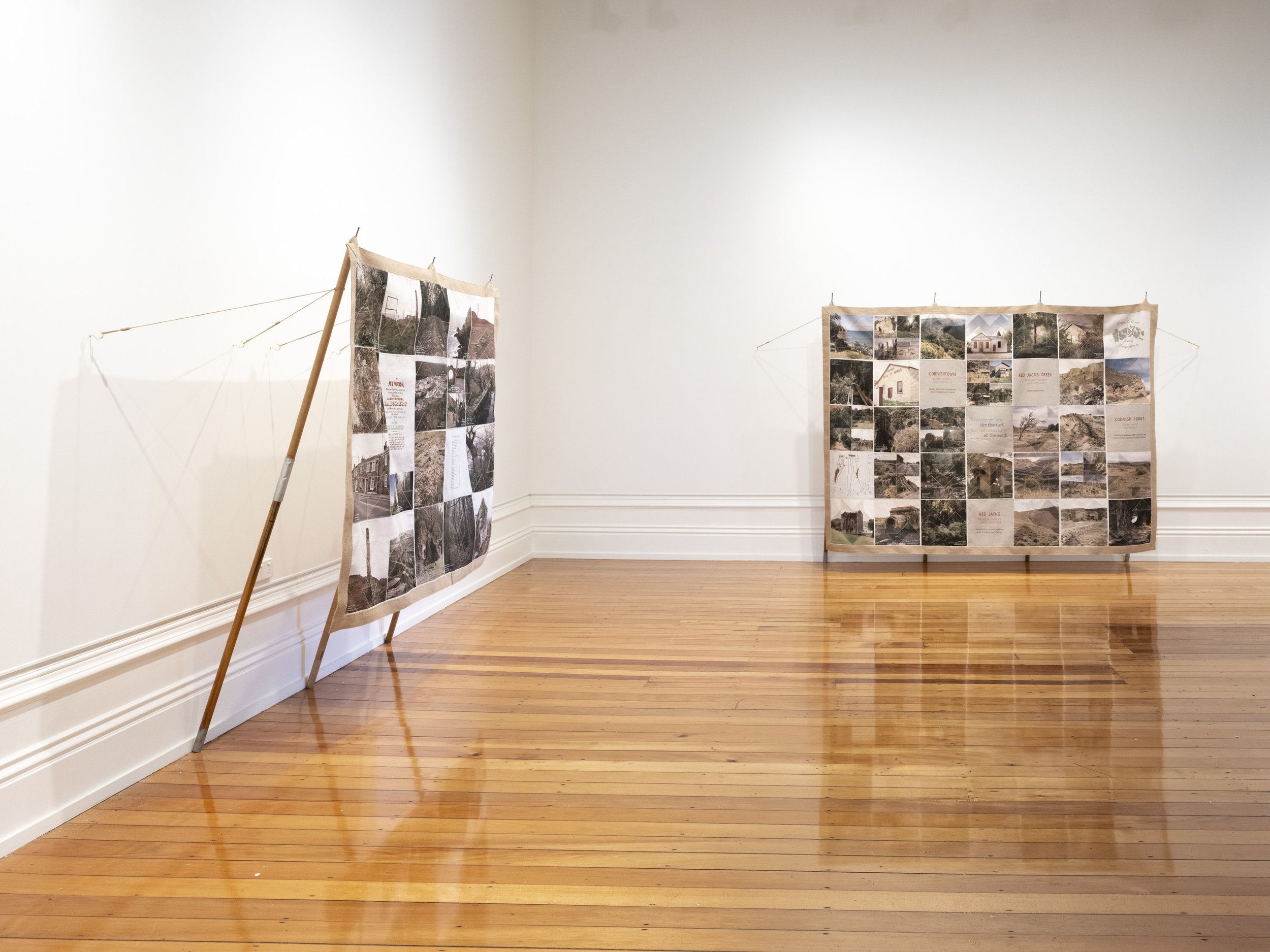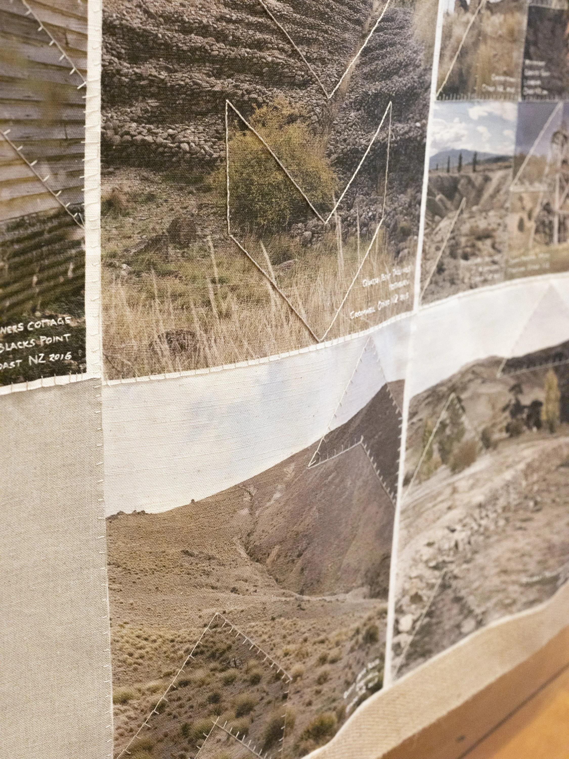 Like the Turf reveals Caroline McQuarrie’s artistic exploration of Pākehā histories of colonial settlement through the examination of a specific set of immigrants in late 19th century Aotearoa New Zealand. Skilled migrants and their families left Cornwall and Southwest Devon’s failing tin mines to join the New Zealand gold rushes or work in underground gold and coal mines. Locations in Aotearoa the miners landed stretched from Kawau Island in the Hauraki Gulf through the Coromandel, the West Coast and into Otago. Conceptually this exhibition examines intergenerational histories and sociologies. Catherine Delahunty has described the post-migratory experience as “the severing from ancestors and from the land that has brought us material advantage and spiritual emptiness. The denial of this condition assists us in our denial of the tangata whenua indigenous reality and justifies our control of resources. But it has required a weird forgetfulness.”[2] Combining photographic imagery, embroidery and textiles to contextualise the lives of these colonial-settlers, Like the Turf weaves the less visible experience of women and families with the legacy of industry left in the landscape. The imagery in Like the Turf has been made on the whenua of Ngāti Waewae, Kāti Māhaki ki Makaawhio and Kāti Huirapa ki Puketeraki (Ngāi Tahu), Ngāti Hauā (Waikato Tainui) and Ngāti Manuhiri.