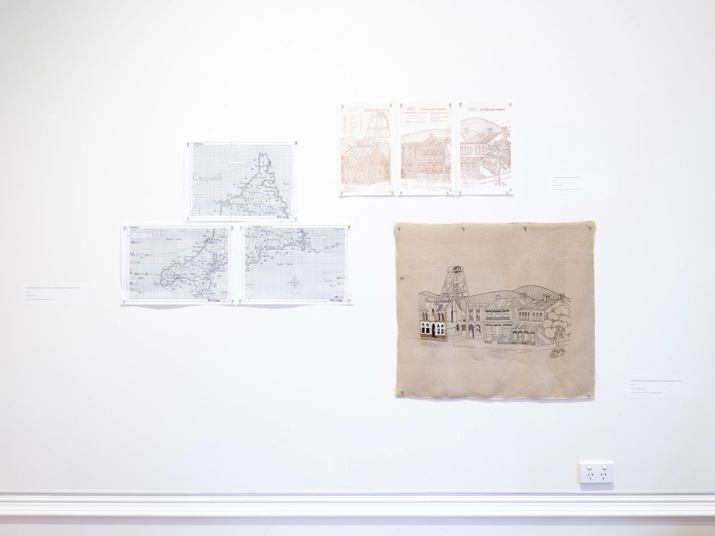 ‘Goldrush Town’ printed backing fabric, partially completed tapestry.