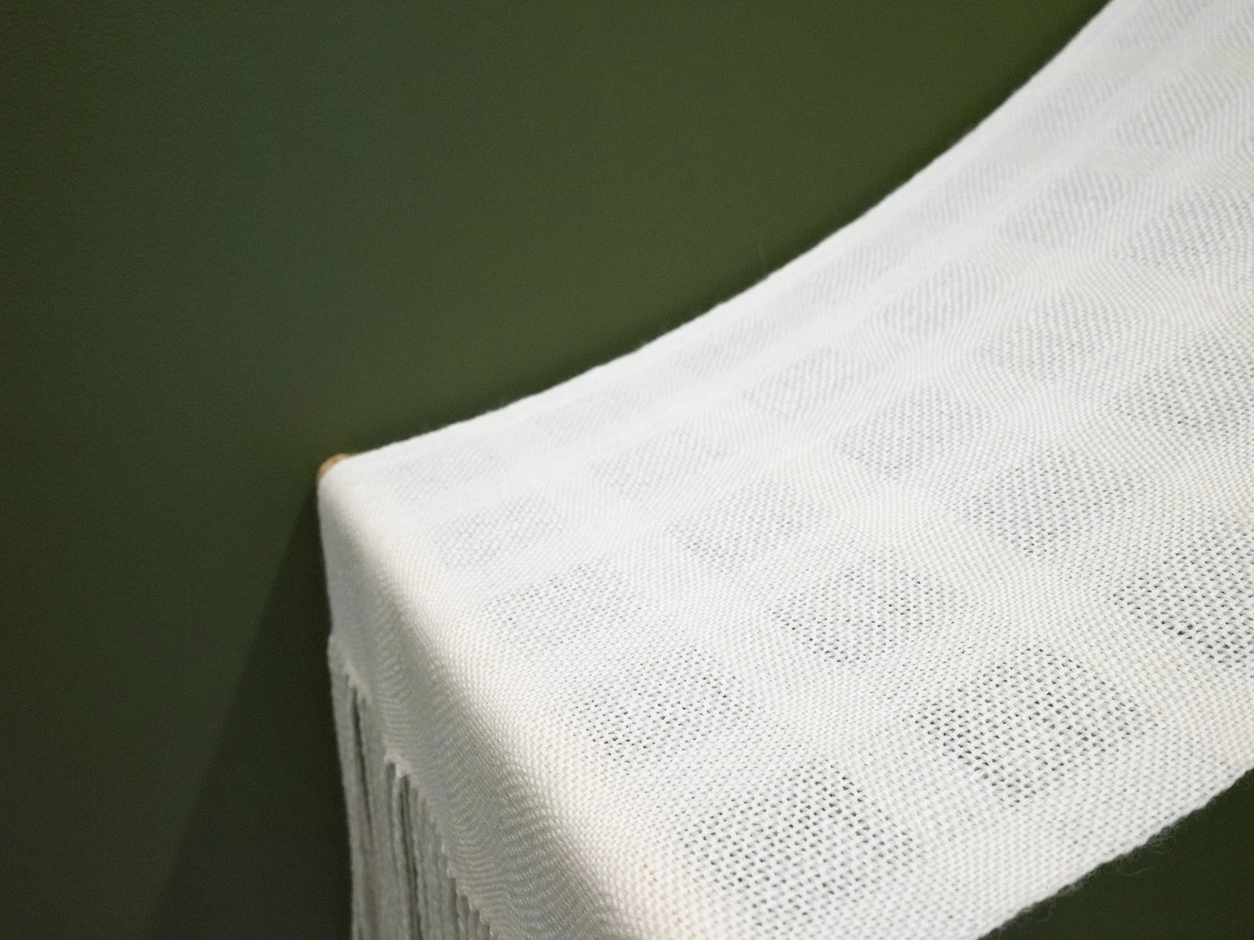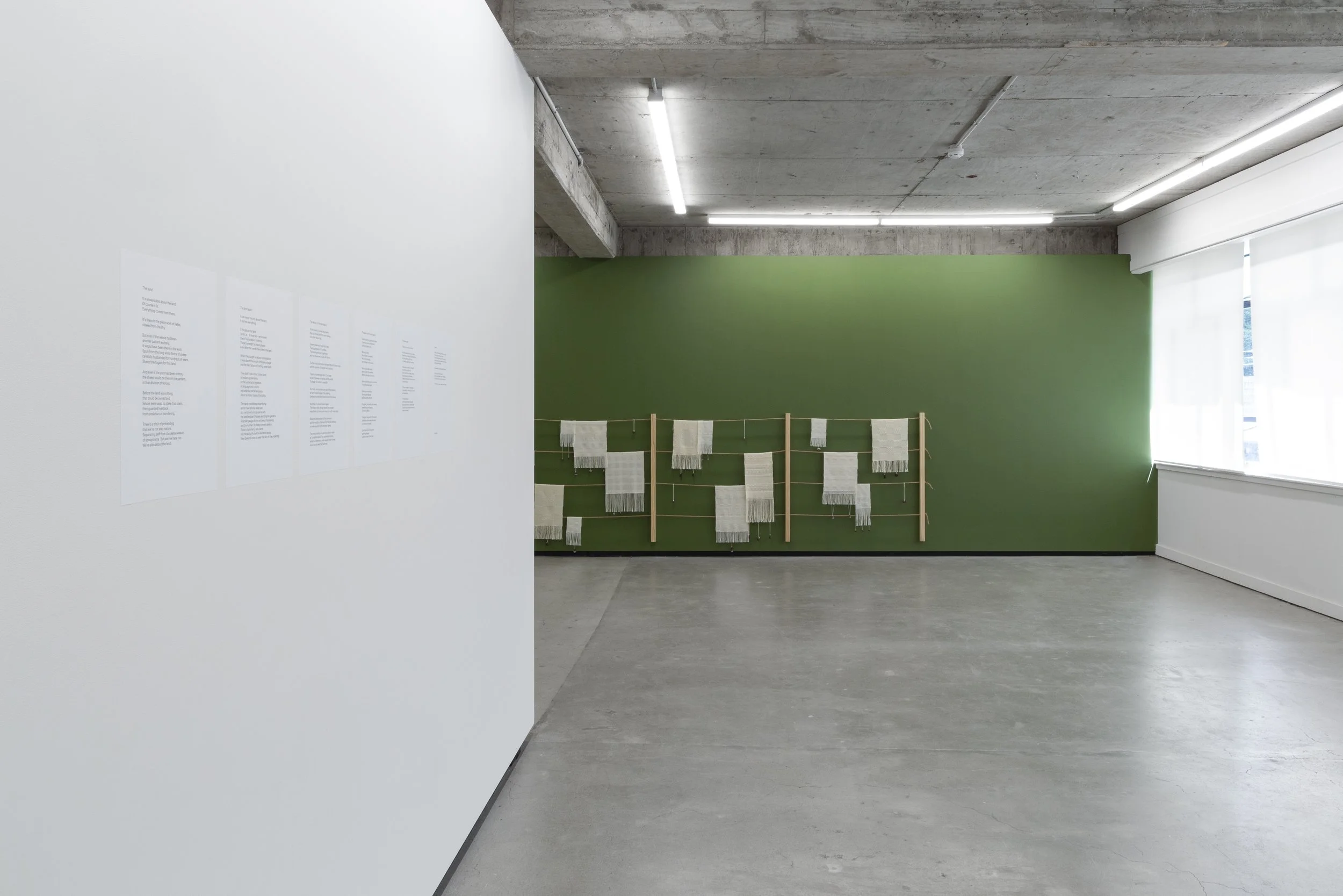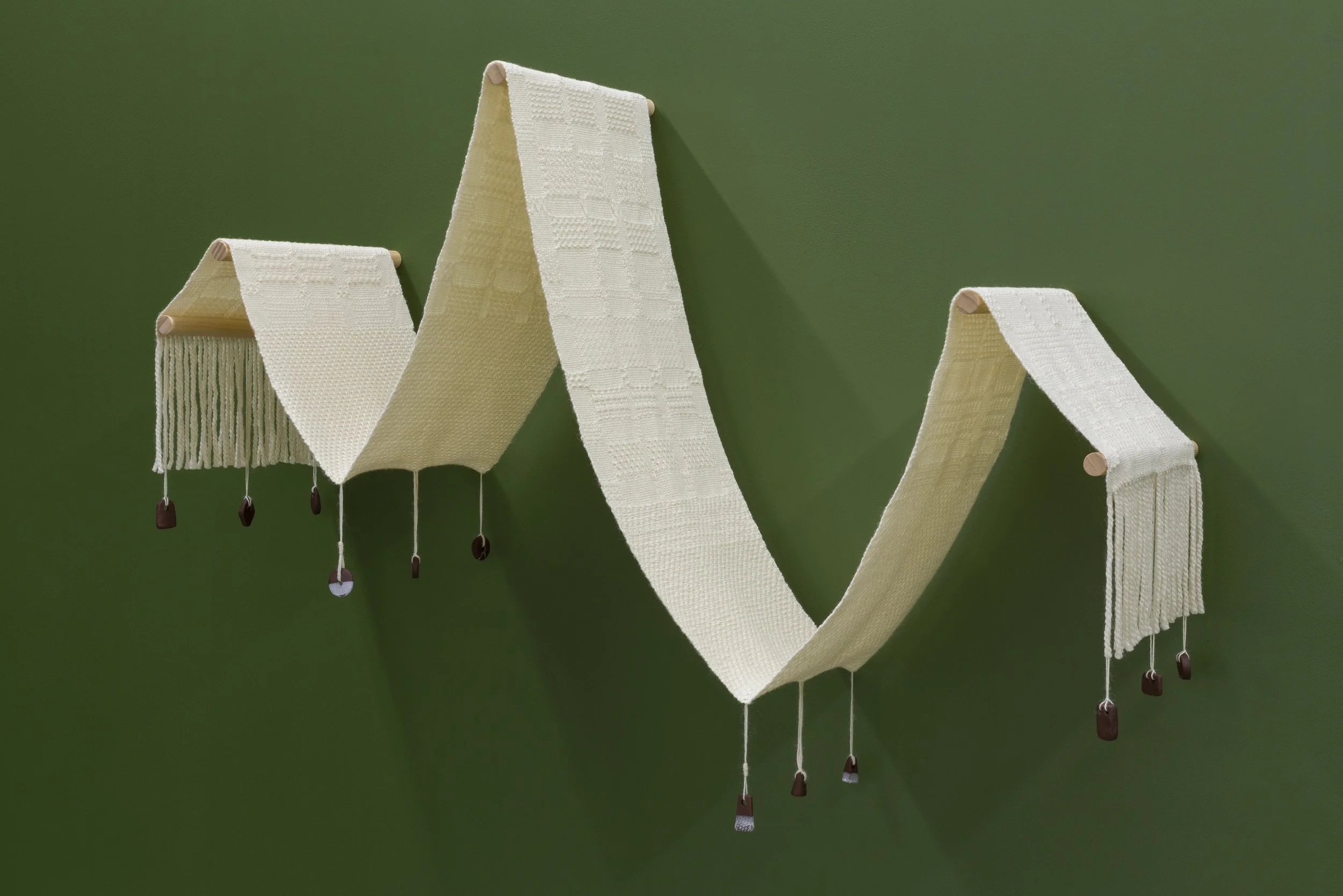 The undyed ‘white’ wool references Aotearoa’s colonial past which is heavily tied to wool production, but also references the centuries long history humans have had with cultivating sheep in order to produce not only food but also textiles. Textile production is inseparable from early human development, and wool was one of the earliest fibres used. The use of land as a source of production is also inextricably linked to textile making and use. While on the residency I read about the earliest histories of humans beginning to divide up land to cultivate animals, along with the long story of our association with sheep.
