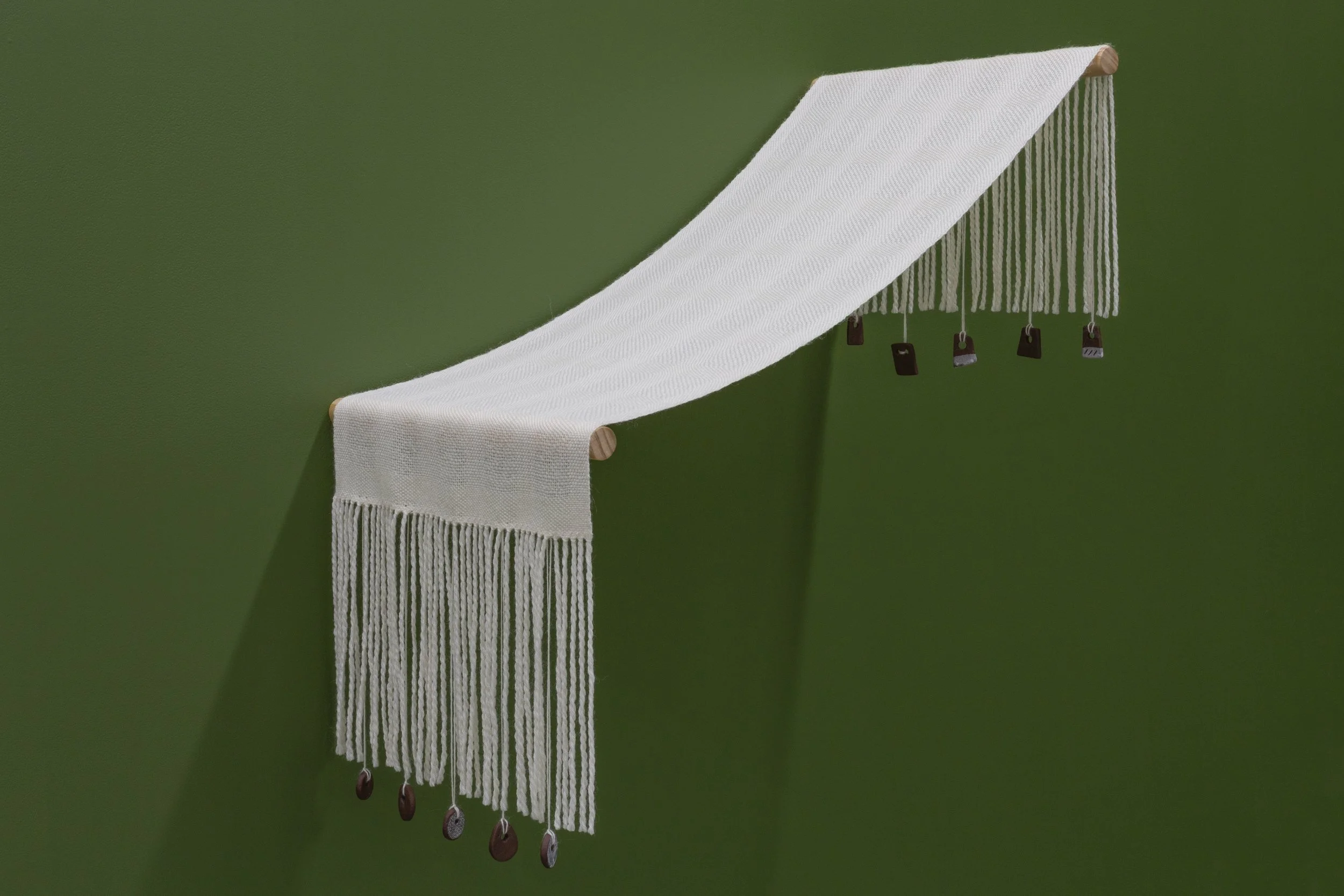 Hand woven Aotearoa grown wool, papa clay, pine, hemp.